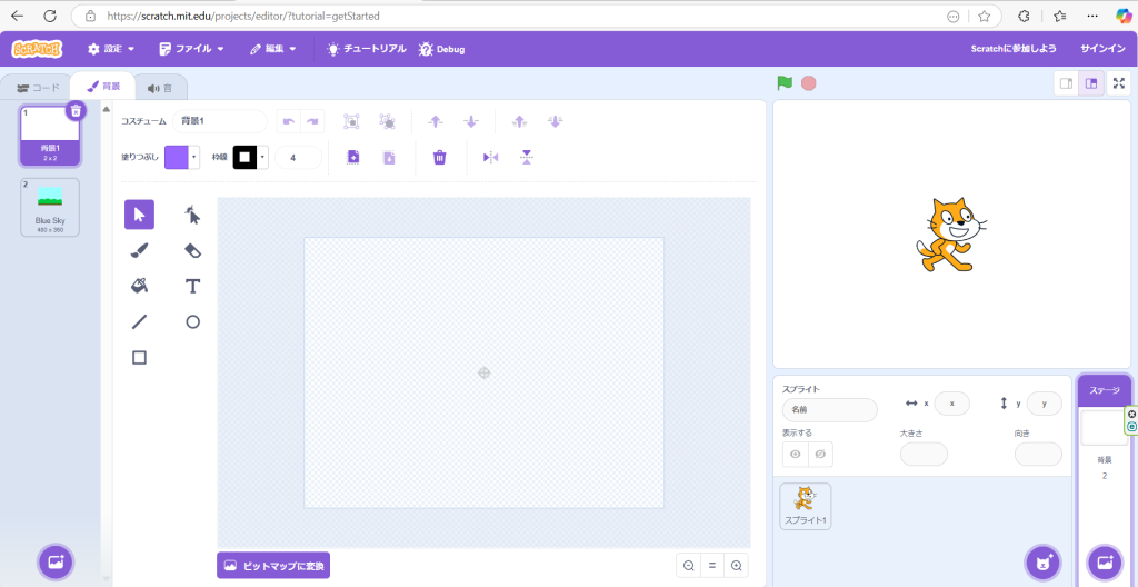 今回はスクラッチで背景の変え方を、説明したいと思います(*‘∀‘)