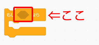 それから、「もし◯○なら」の、ブロックの六角形のスペースに、入れます。