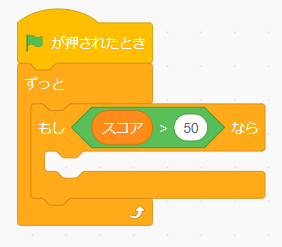 このブロックを「もし◯○なら」の、六角形のスペースに、挟むと、
