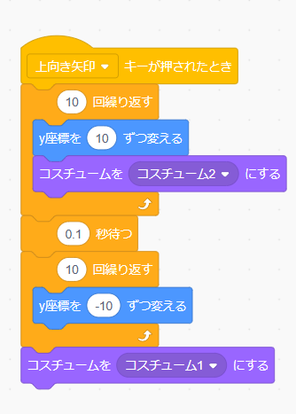 そして、「動き」から、「y座標を10ずつ変える」を出して、