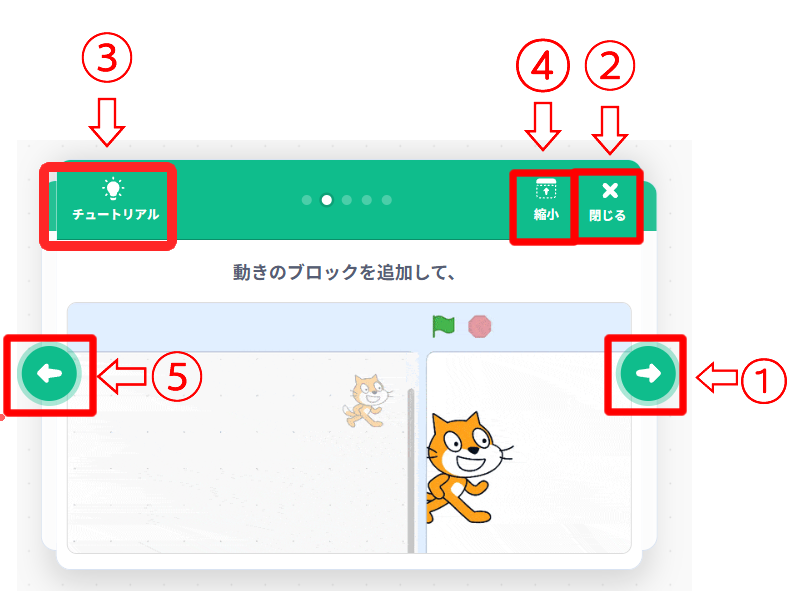 | ② | チュートリアルを閉じる |