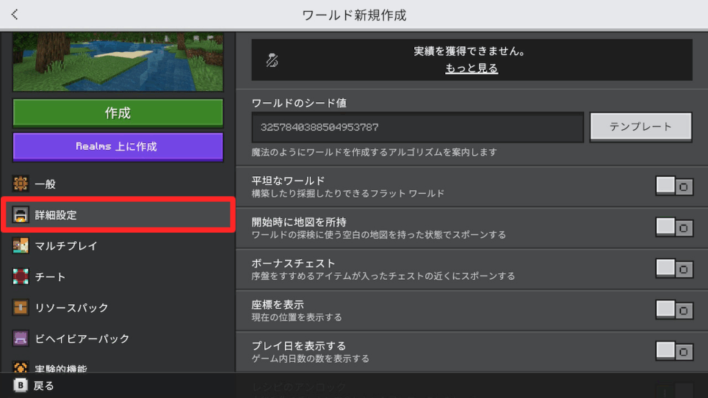 すると、平坦なワールドという項目があるのでそれをオンにすると、フラットワールドが作れます!