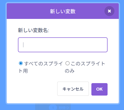 このようなものが出てくるので、「新しい変数名:」に、「タイマー」と入力します。