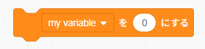 次に、「変数」から、「my variable▾を0にする」をつなげます!