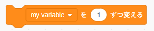 「変数」から、「my variable▾を1ずつ変える」を、入れて、